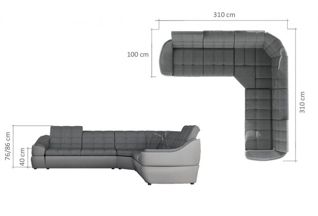 wymiary: 310 x 76 - 86 x 310 cm (szerokość x wysokość x głębokość)