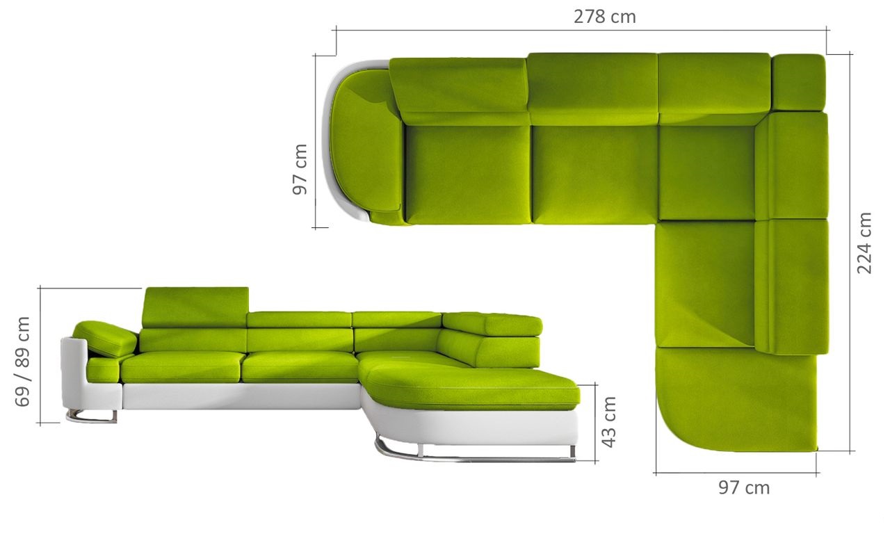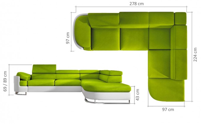 278 x 69 / 89 x 224 cm (szerokość x wysokość x głębokość)